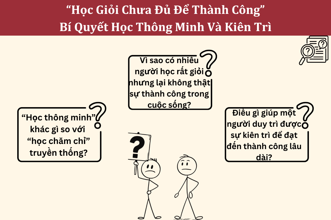 Trong xã hội hiện đại, nhiều người vẫn tin rằng chỉ cần học giỏi và chăm chỉ là đủ để thành công. Nhưng thực tế cho thấy, điểm số cao hay bằng cấp danh giá không đảm bảo cho một tương lai bền vững. Thành công không chỉ đến từ kiến thức, mà từ cách chúng ta học, cách chúng ta nghĩ và cách chúng ta kiên trì theo đuổi mục tiêu. “Học thông minh” chính là biết lựa chọn phương pháp hiệu quả để tối ưu thời gian, hiểu sâu, nhớ lâu và phát triển toàn diện.