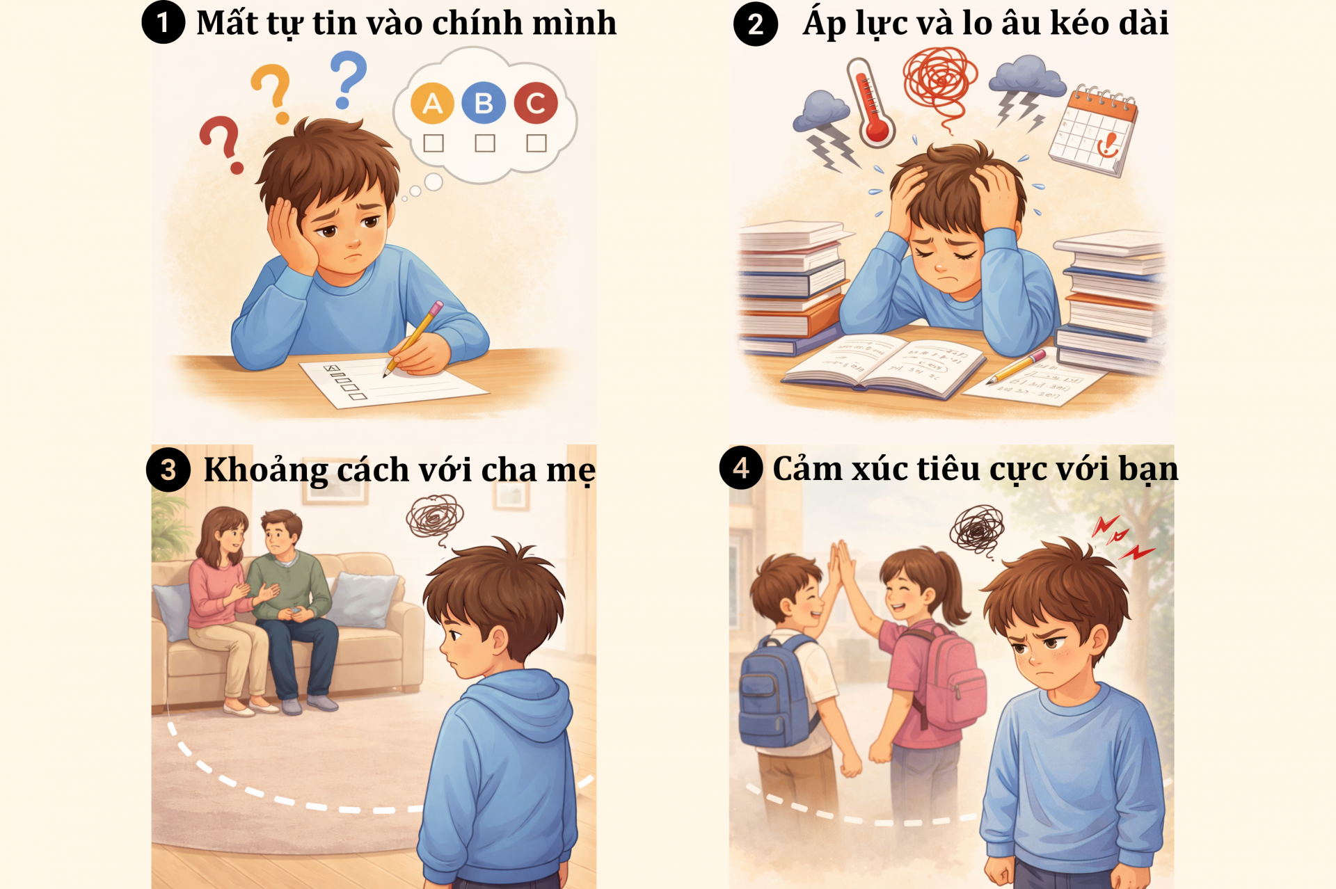 So sánh khiến trẻ cảm thấy mình luôn phải “chạy đua” để được công nhận. Con học không còn vì yêu thích, mà vì sợ bị so sánh, sợ bị đánh giá.